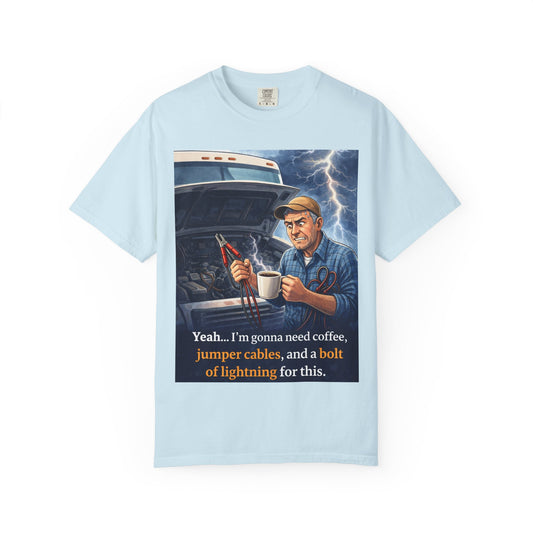 Mechanic Coffee & Jumper Cables T-Shirt — Vintage Roadside Humor Tee