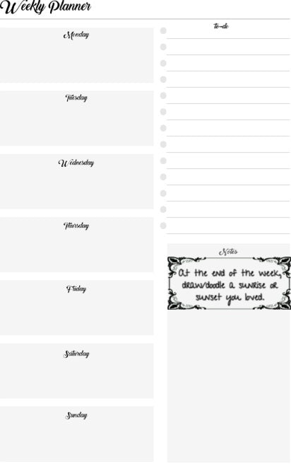 - 6 Weekly Planning Pages – Stay on track with space for your weekly schedule, to-do list, and notes.